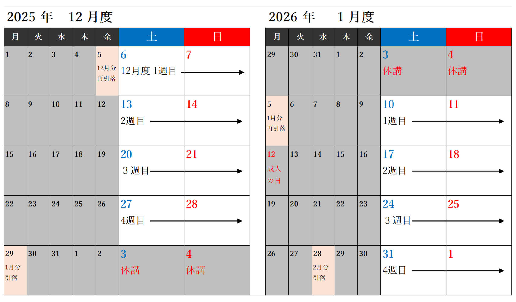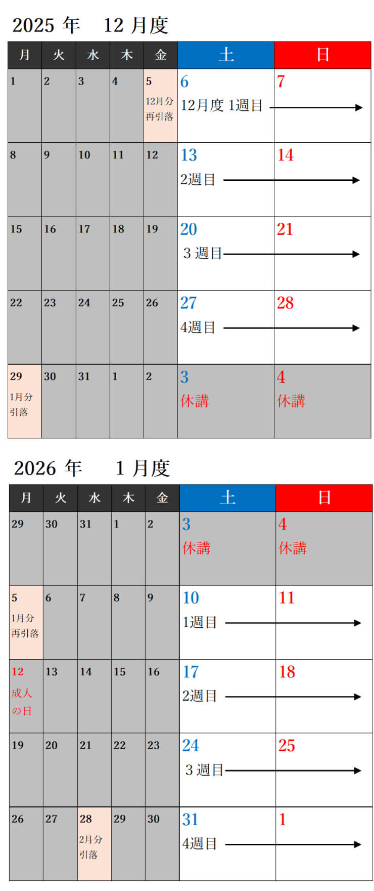 - ◎1月は3,4日が休講日となります。